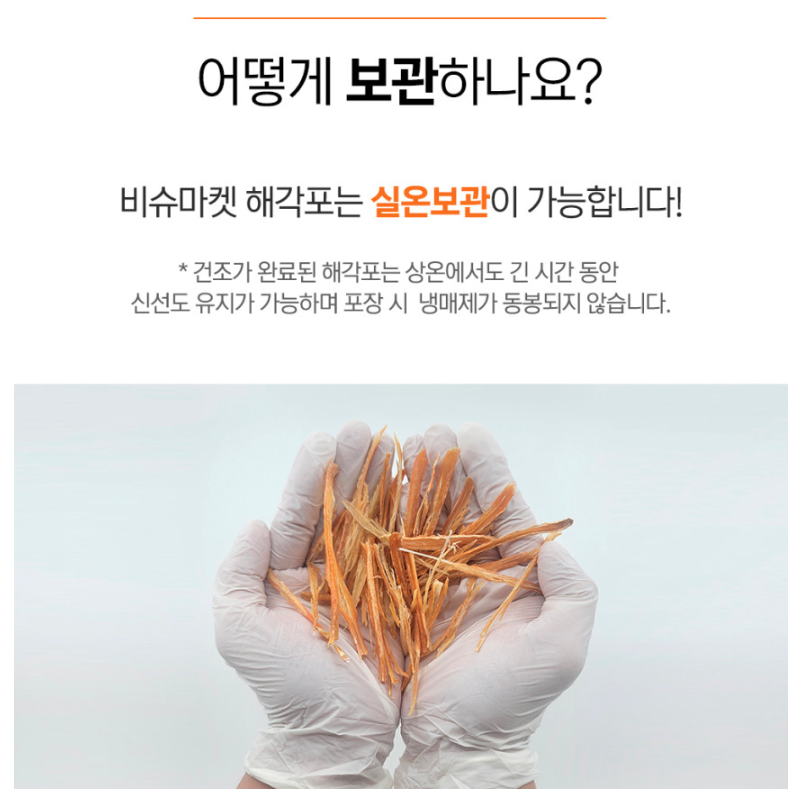 사실 비슈마켓 해각포로 결정한 주요한 이유는, 리뷰가 전반적으로 괜찮다는 점과 더불어 50g 소량으로 구매가 가능하다는 점이었다. 안먹어봤는데 처음부터 너무 많은 양을 덥석 사기도 좀 그랬고, 가격도 대체로 비싸다 보니 맛보기로 구매하기엔 좀 부담됐다. 그런데 비슈마켓은 50g을 파니까! 해볼 만하다고 느껴서 비슈마켓 해각포로 선택.