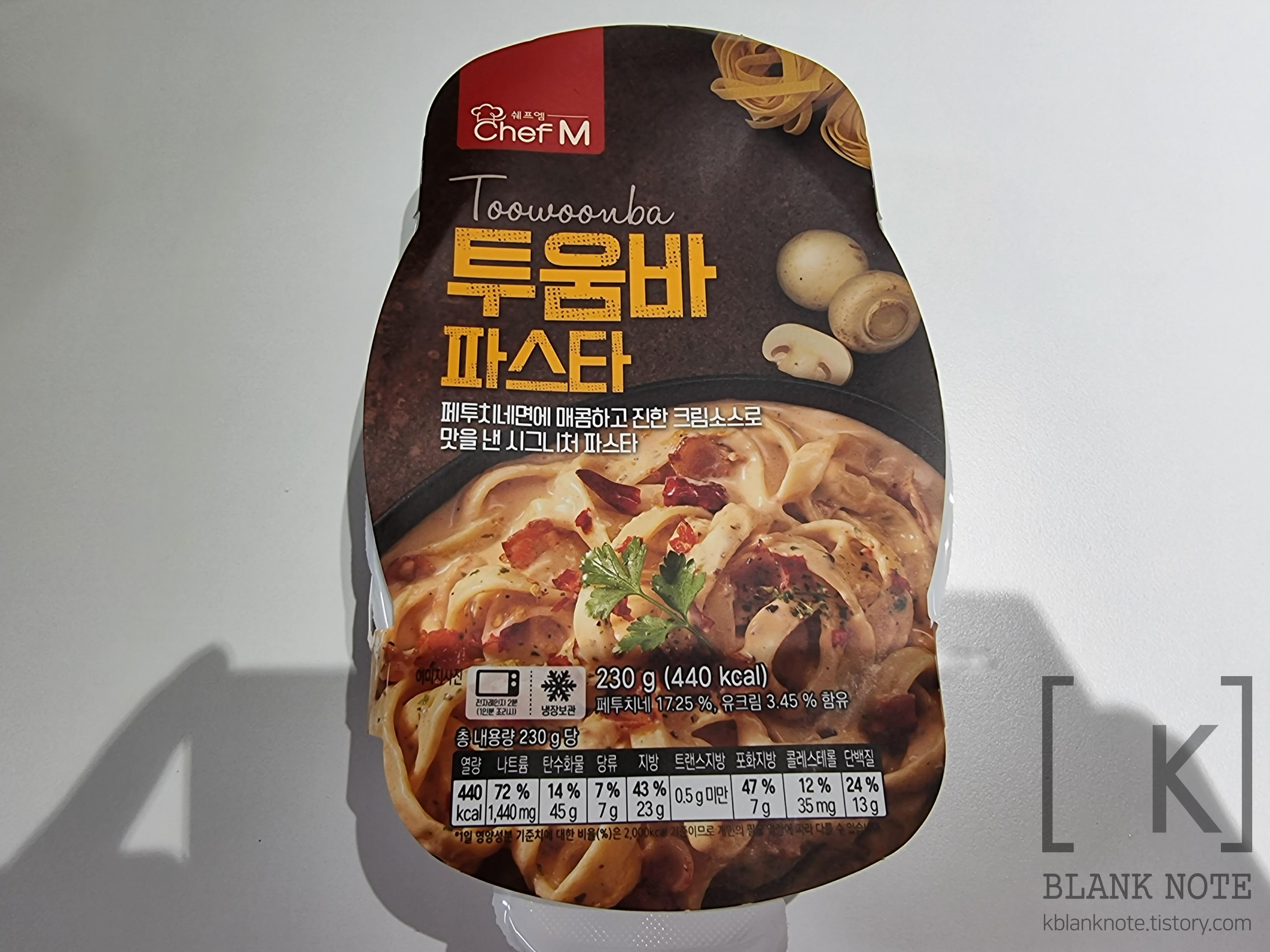 gs에서 가족이 구매해 온 쉐프엠 (chef M) 투움바 파스타. 내가 사 온 게 아니라 정확한 가격은 모르지만 대충 3500원 즈음... 인 것 같다. 네이버 검색해 보니 4개 묶음, 8개 묶음 등으로 사면 3천 원 즈음이니까 요즘 같은 고물가시대에 가격은 착한 편!! gs 뿐만 아니라 다른 편의점에서도 판매 중인 것 같다.