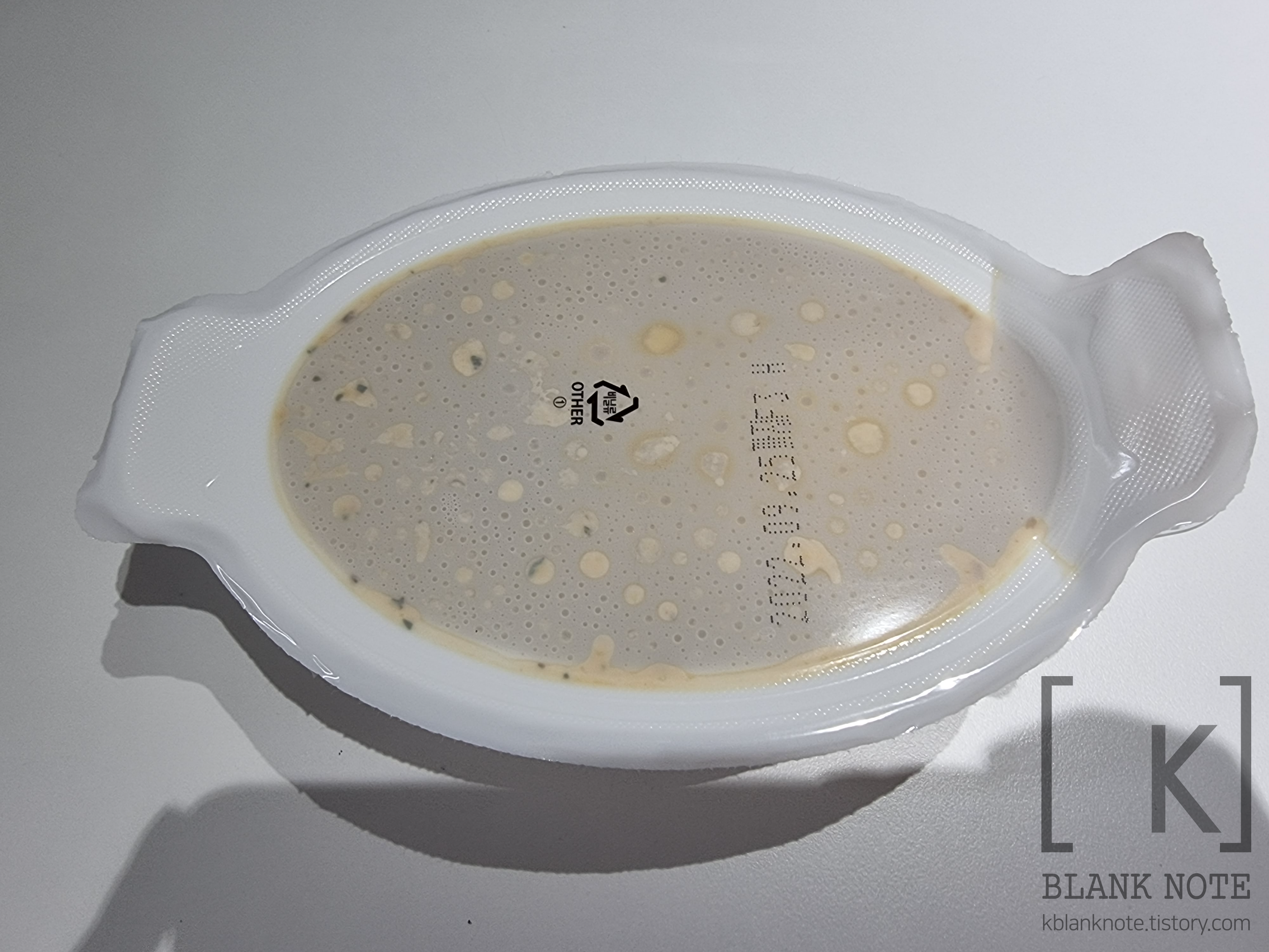 용기는 그리 크진 않다 손바닥 하나 크기...? 근데 애초에 230g용량이니까 사실 뭐 클 거라 생각하지도 않았고... 가격도 아무리 편의점 레토르트 식품이라지만 3천 원대에 많은 양을 기대하긴 어렵긴 하다. 하지만 양은 적어도 칼로리는 440kcal...! 칼로리가 높다는 것은 곧 맛있을 확률이 높다는 것...!!!
