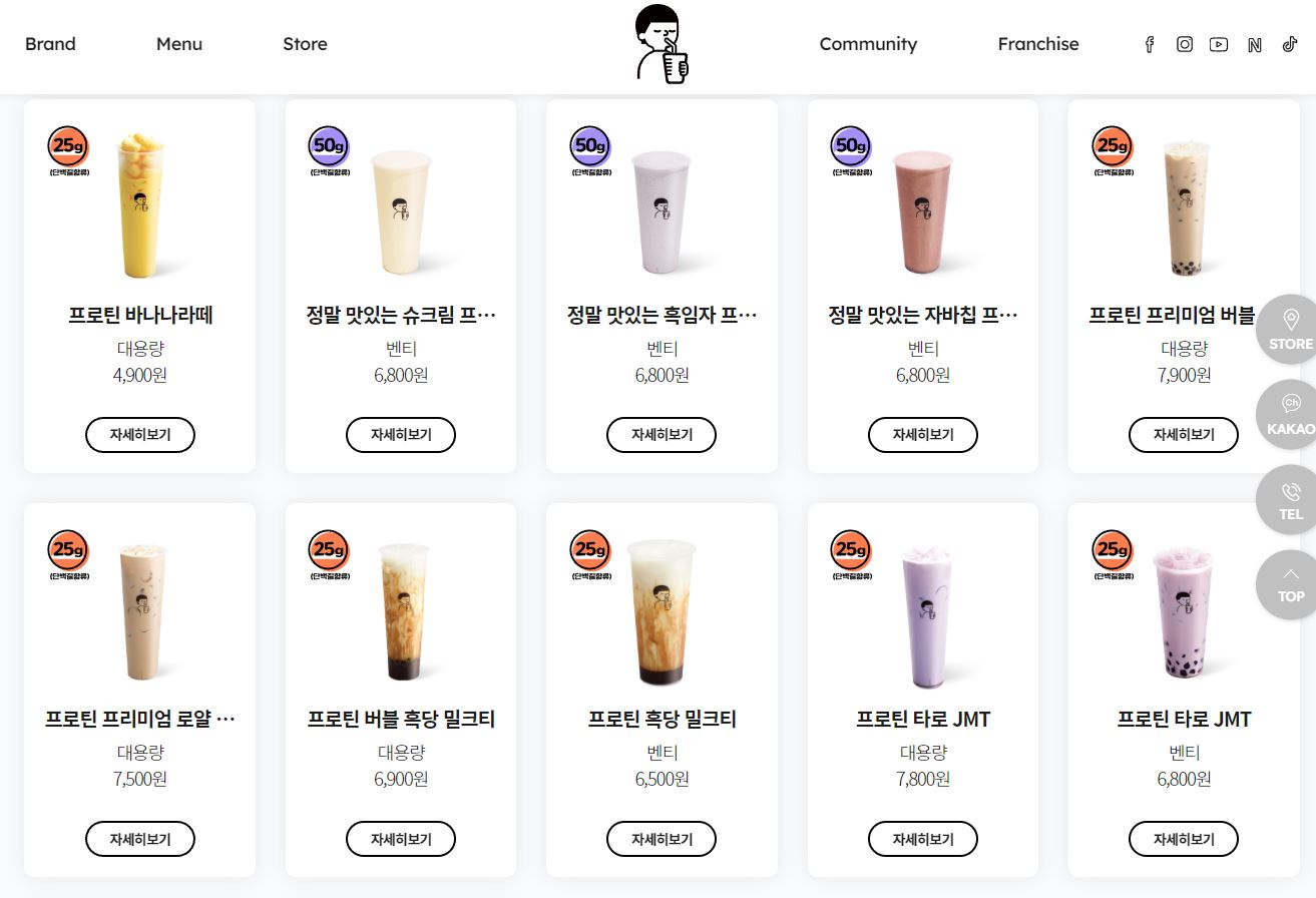다만 다이어트 중이라면 당류나 칼로리도 중요할텐데, 초코크림 프로틴 쉐이크...는 왜인지 모르겠지만 홈페이지에서 사라졌으니 조금이라도 비슷한 음료를 예시로 들고와보자면,