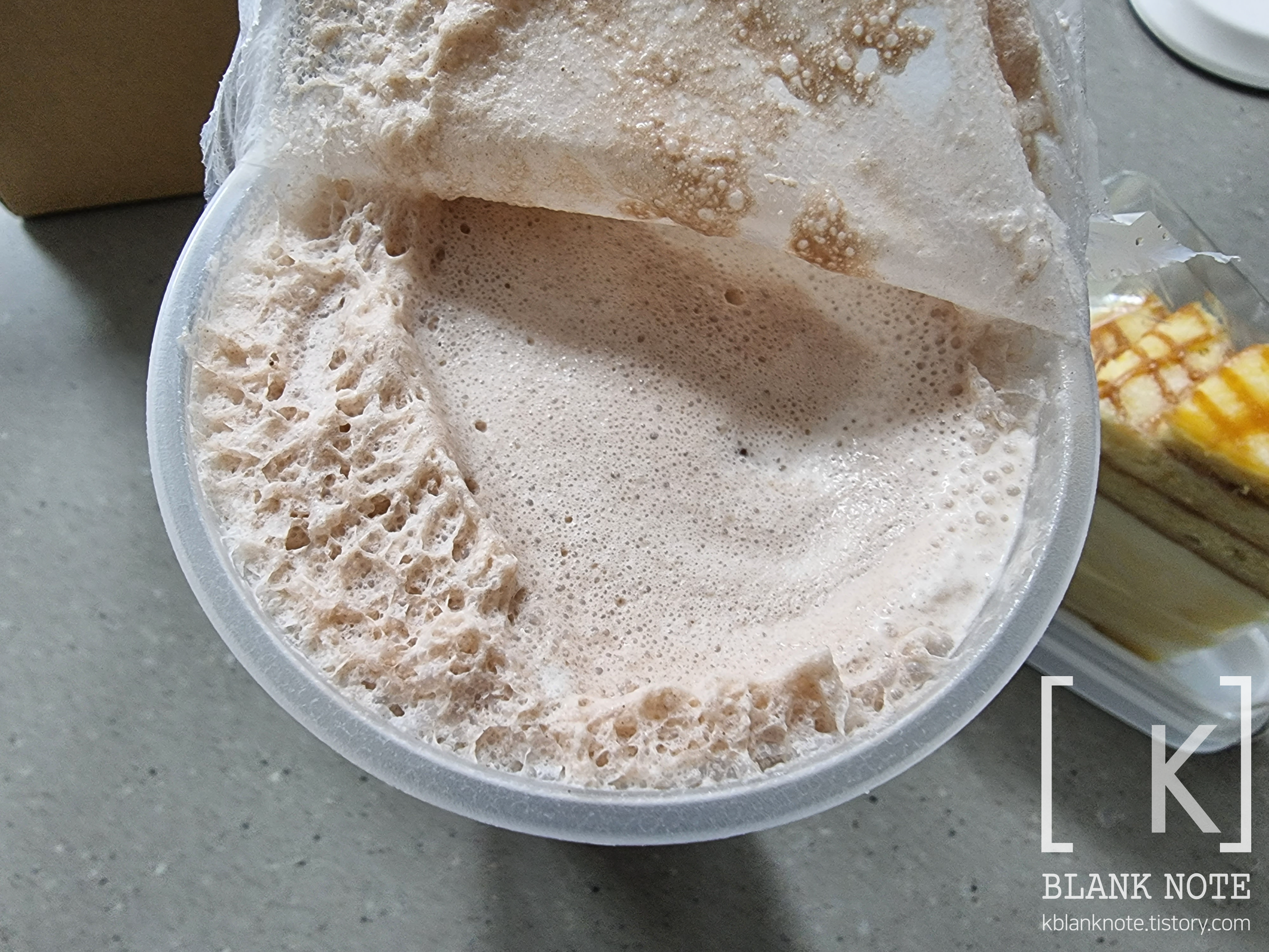 까보니까 초코"크림"프로틴쉐이크라 그런지, 윗부분은 크림 위주.