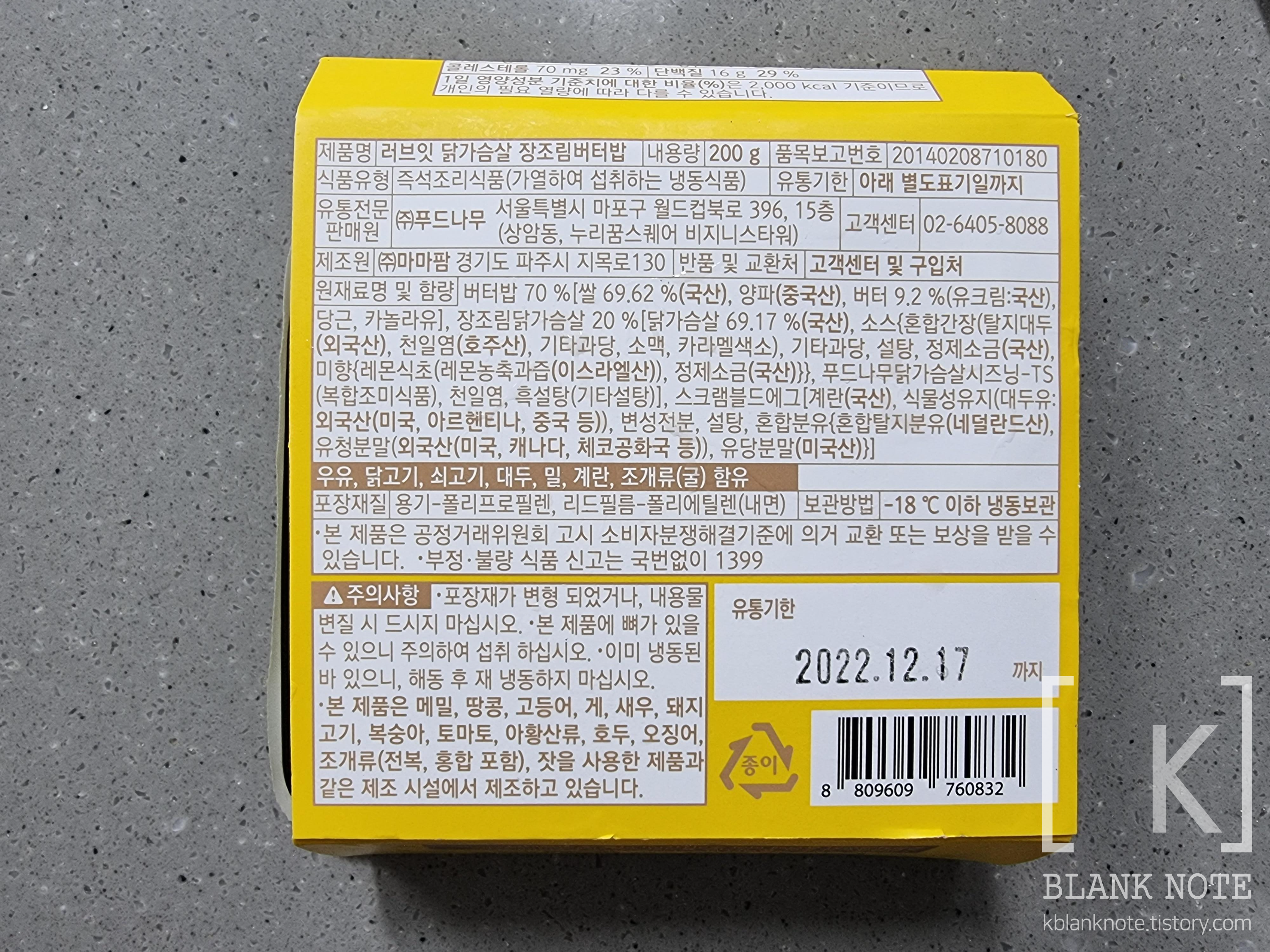 포장은 깔끔하게 생겼다. 사실 처음에 보고 의아할 수밖에 없었다. 버터...가 들어가는데 다이어트식이 된다고? 일단 닭가슴살과 스크램블드 에그로 단백질이 16g 채워진다는 점은 매우 만족스럽다. 양은 200g이고, 간편식이다보니 전자렌지로 조리하면 끝. 숟가락은 안들어있으니 따로 준비해야 한다.