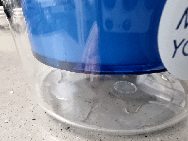 요령은, 끝까지 붓는게 아니라 딱 저정도까지만 붓는 것. 하얀색 망을 뚜껑처럼 올렸을 때, 파란 통의 끝부분(?)을 넘지 않을 정도...의 양을 부어넣으면 된다. 뭐 조금 덜 붓거나 더 붓는다고 큰일나는게 아니니 겁먹지 말고 적당하게 부어주면 된다.