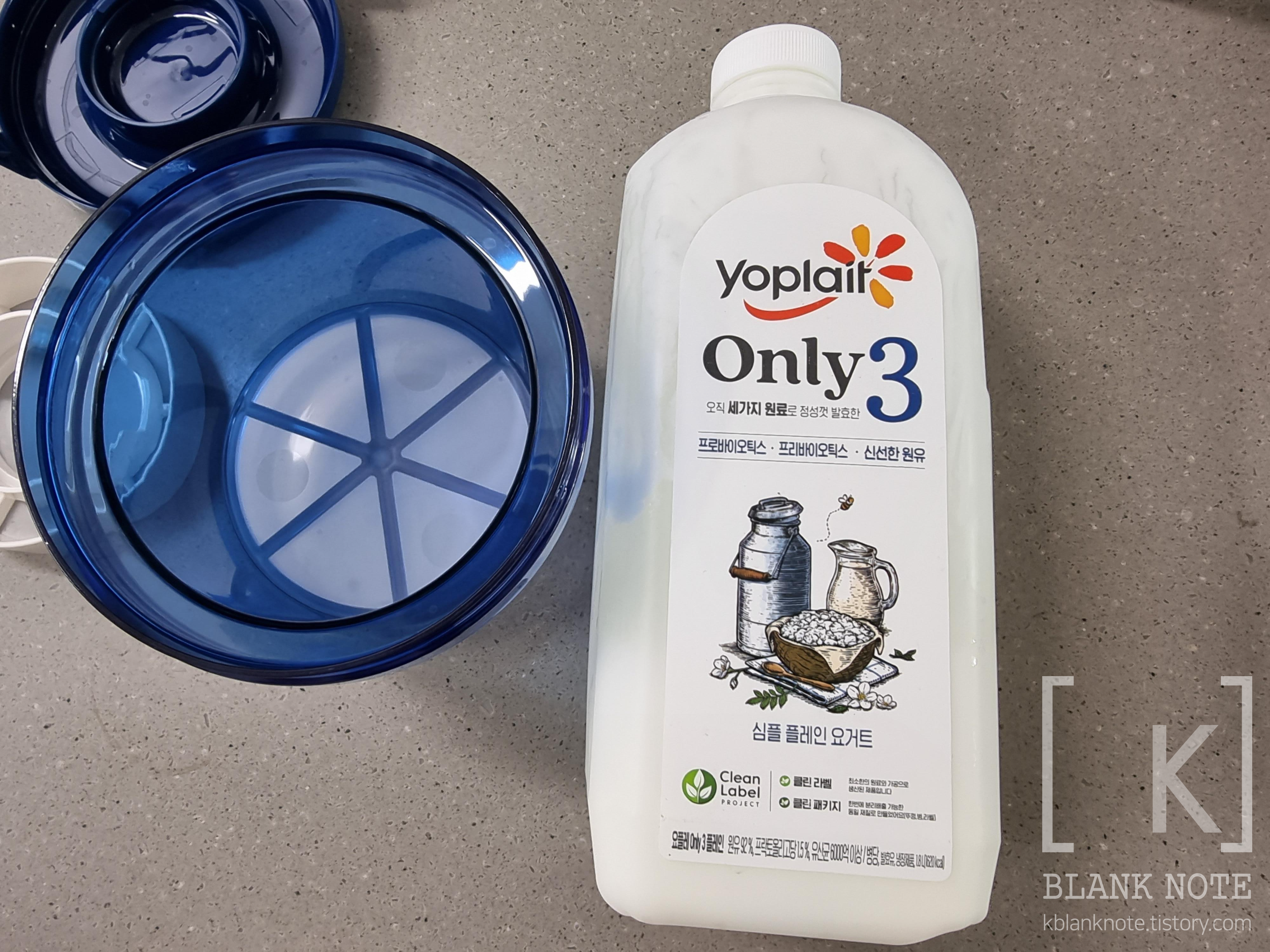 시판되는 모든 요거트가 다 그릭 요거트 만들기에 적합한 것은 아니며, 유청 분리기마다 잘 되는 요거트가 정해져있는 것 같다. 몇가지 있겠지만 나는 요플레 only3로 정착한지 오래. 다른 요거트 두어가지 시도했는데 하나는 아예 유청이 안걸러졌으며, 또 하나는 걸러지긴 했지만 맛이 요플레 only3로 만든것보단 별로였다. only3로 만들면 시큼한 맛이 거의 없으며 (내기준!) 살짝 달달해서 먹기에 좋다.