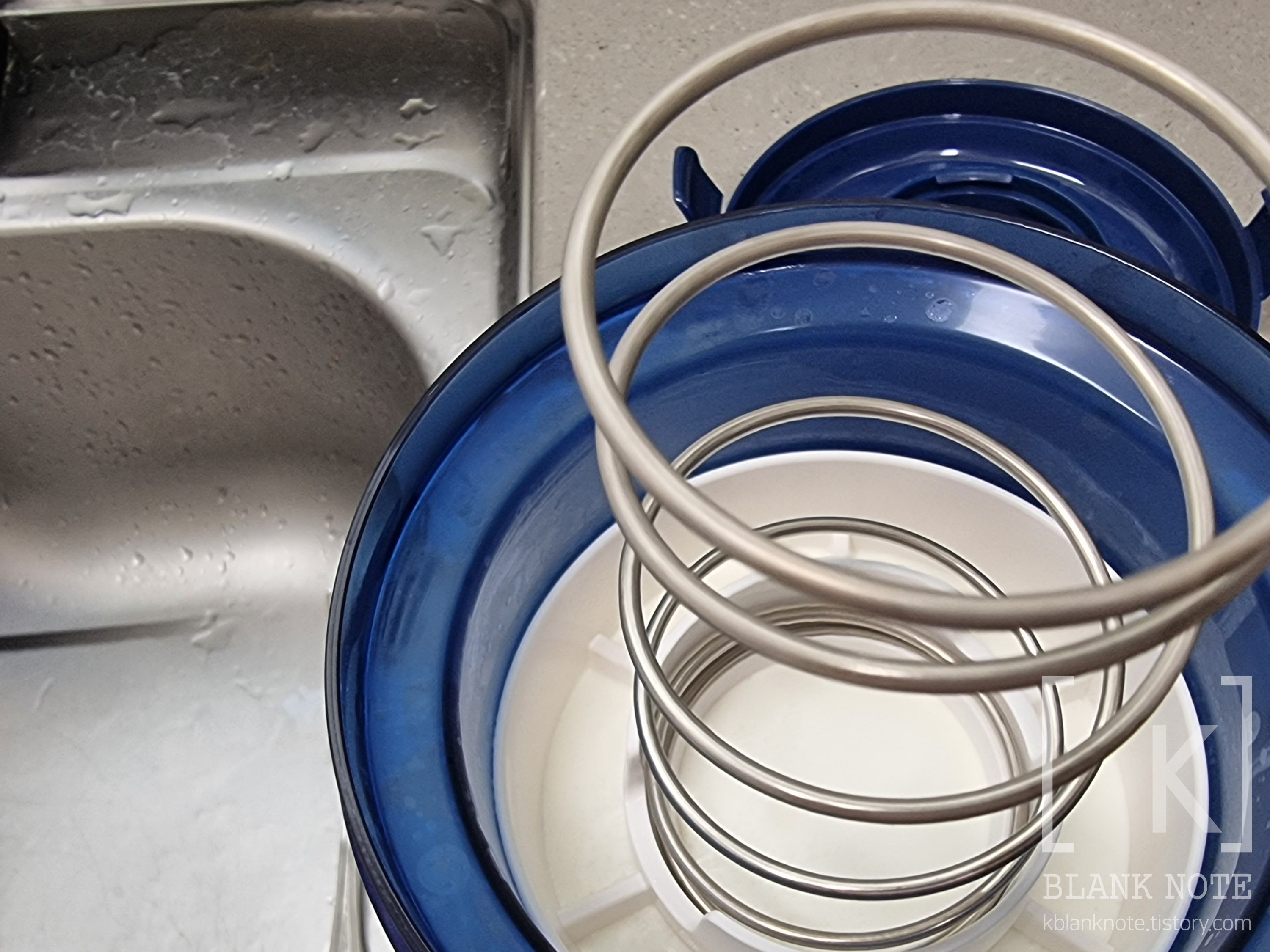 하얀게 윗부분을 눌러주는 망이고, 파란색이 요거트를 붓는 망이다.