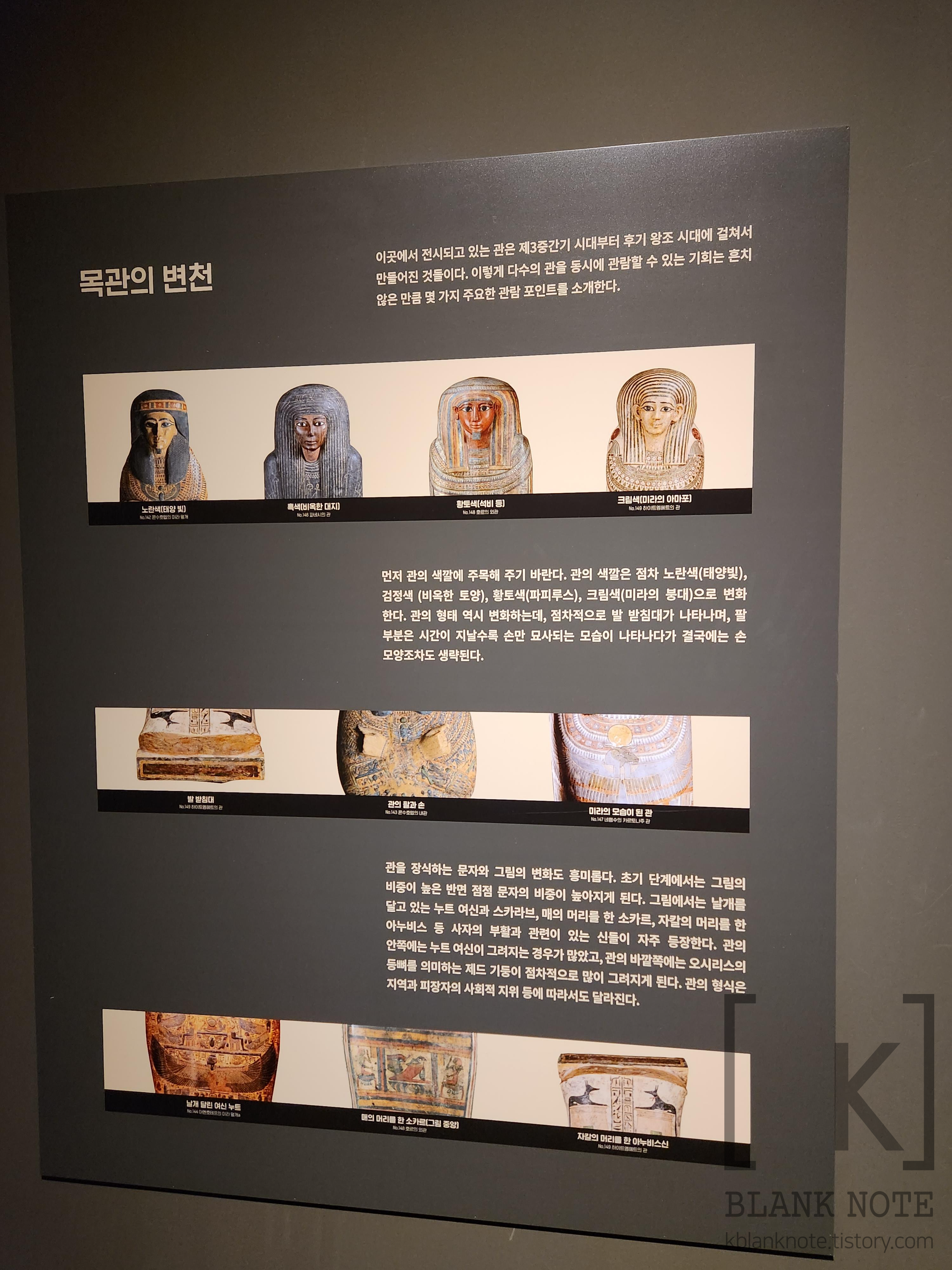 미라 및 관 전시가 본격적으로 시작되는 곳이다. 이렇게 원형으로 전시관이 꾸며져 있는데, 하필 가장 인상 깊었던 곳을... 사진을 가장 못 찍었다.... ㅠㅠㅠㅠㅠㅠㅠㅠㅠ 사진 초점이 나가서 되게 없어 보이게 나왔는데, 실제로 원형으로 구성된 전시 공간이 무척 좋았다. 벽면을 따라 관을 시대별로 전시해 둬서, 미라 관장식이 시대의 흐름에 따라 어떤 식으로 바뀌는지 볼 수 있었다.